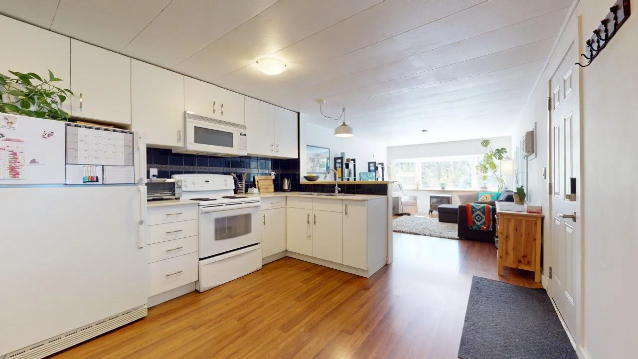 As you walk up you will notice the sun soaked yard wrapping around the home, covered deck, storage shed, sled shed, and even an outdoor shower to rinse off. Stepping inside you find the well laid out kitchen, dining, and living room. Down the hall are two large bedrooms, separate laundry room, and the recently (2023) renovated bathroom.